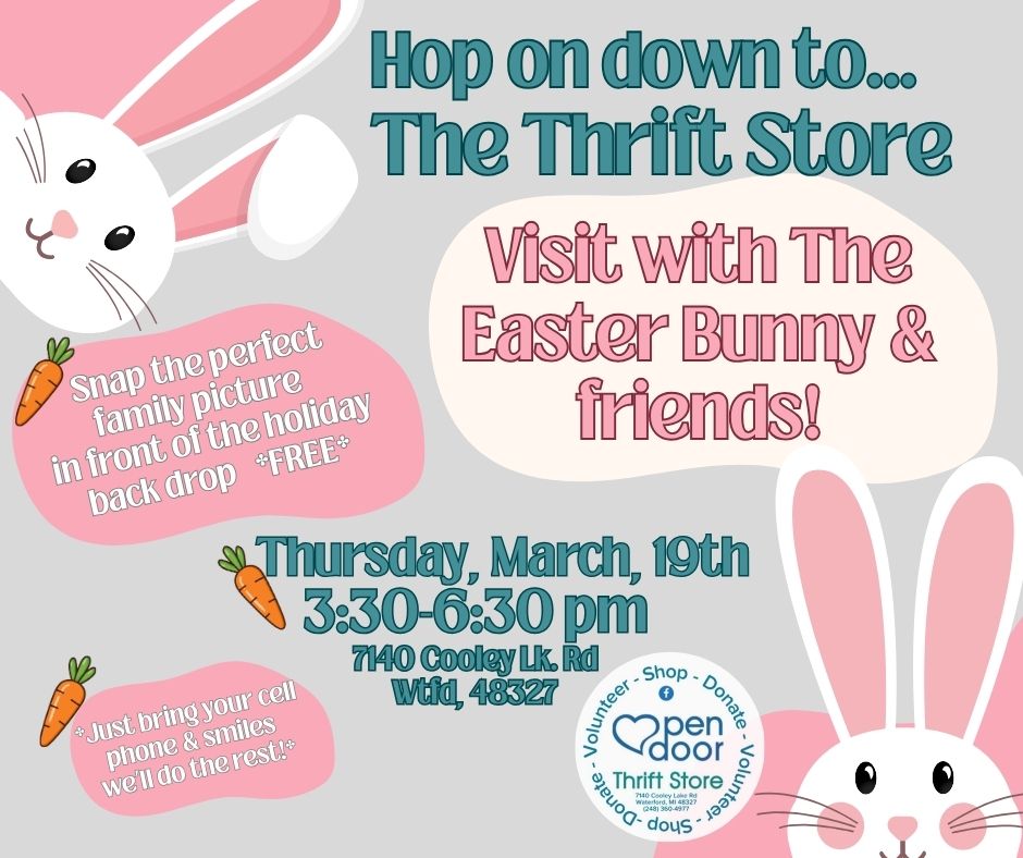 Hop on down to Open Door Thrift Store to visit with the Easter Bunny & friends.